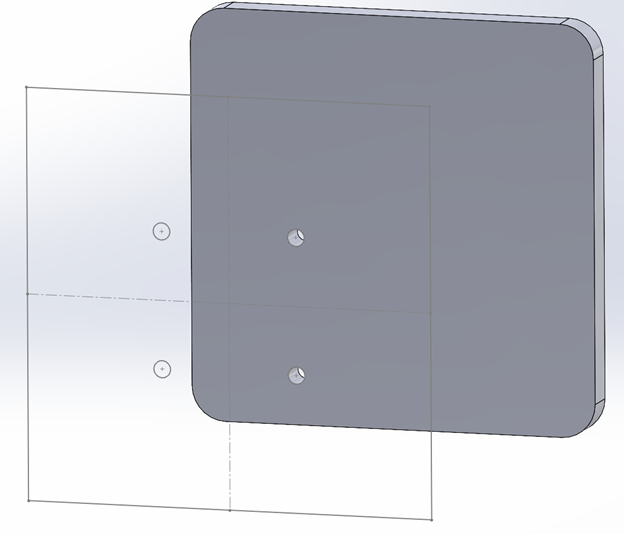 Ideally, your skeleton part is mated to the origin for maximum stability, but this creates a serious problem. As soon as you move your plate to adjust its position in the assembly, your feature must stay in place relative to the origin, so the feature ends up in an unexpected position or perhaps fails entirely.